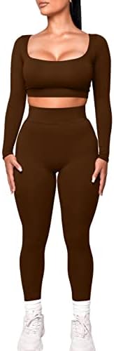 This casual matching sets feature crop top and leggings pants, square neck, long sleeve, the sexy two piece outfits is high waisted with elastic waistband, bodycon fitted. This jogging suits fit like a glove, It hugs all your curves so sexy